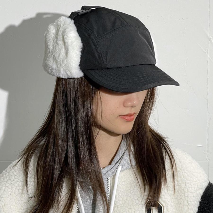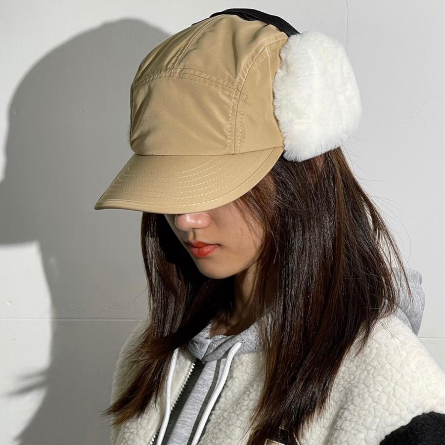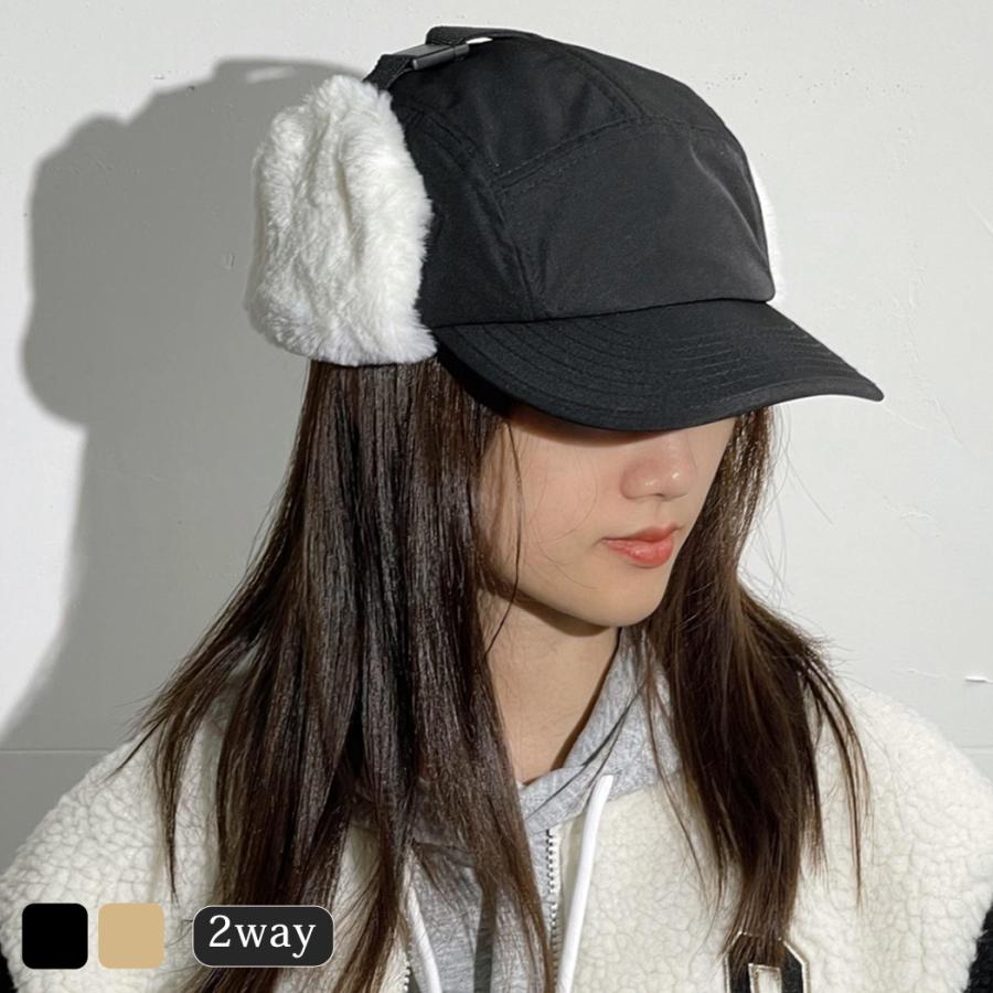 耳あて部分は上で留めても下ろしてもOKな2wayスタイル。