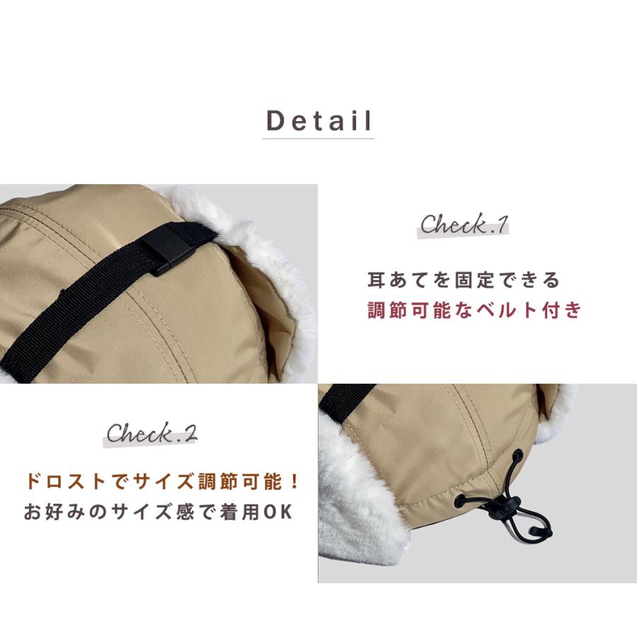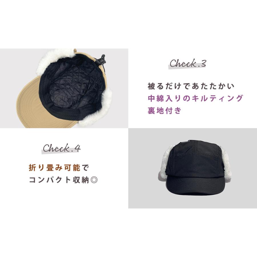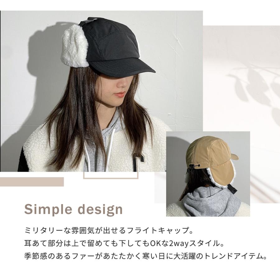 メール便送料無料 フライトキャップ レディース 帽子 ぼうし 飛行帽 防寒 暖かい 2way 耳あて 耳付き ふわふわ フェイクファー ベルト 固定 ドロスト サイズ調節 裏地 中綿 キルティング コンパクト 折りたたみ 普段使い アウトドア ミリタリー コーデ アイテム 黒 白 秋冬