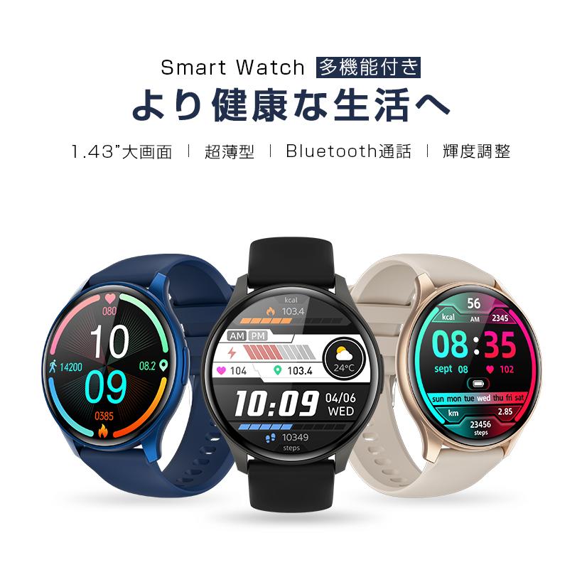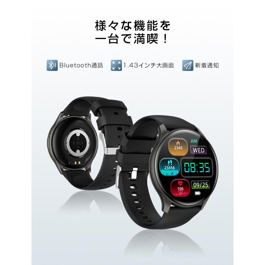 明誠 スマートウォッチ 1.43インチ大画面 Bluetooth5.3 スマートブレスレット 通話機能付 スポーツウォッチ 音楽再生 健康管理 運動管理【PL保険加入済み製品・安心】