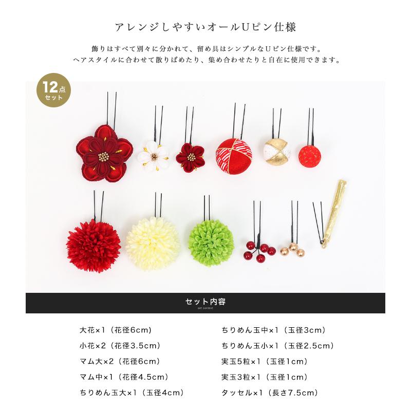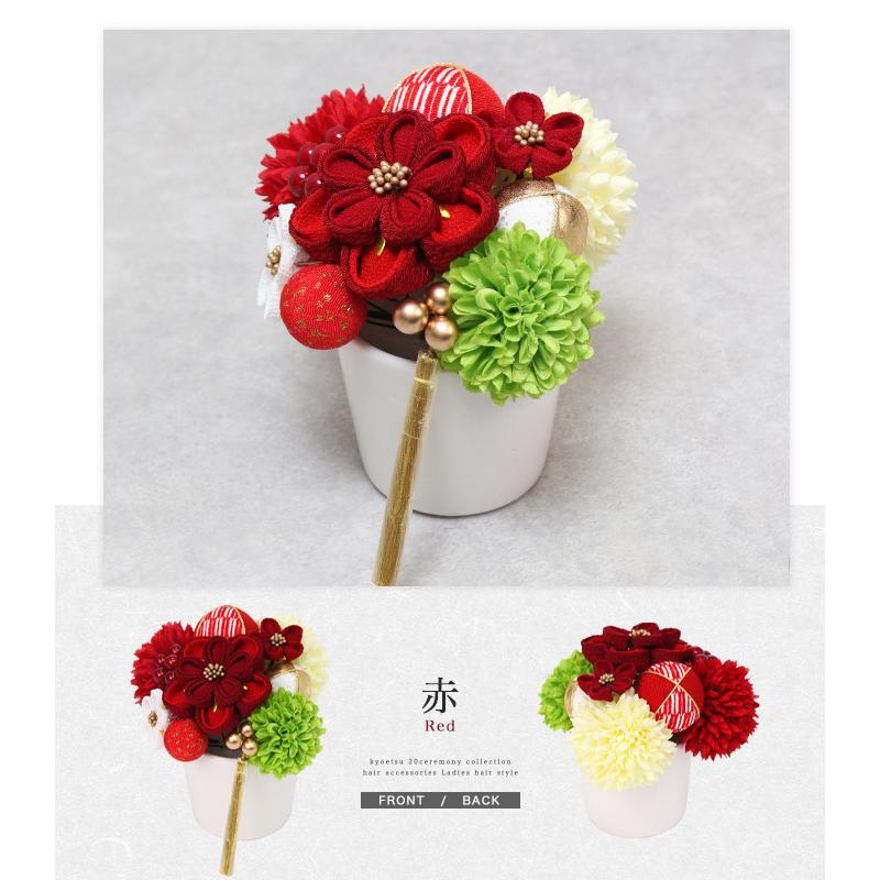 KYOETSU (成人式用髪飾り 美和花) 髪飾り 成人式 つまみ細工 セット 3colors 振袖 花 和装 着物 赤 白 黒 ベージュ 卒業式 袴 かんざし